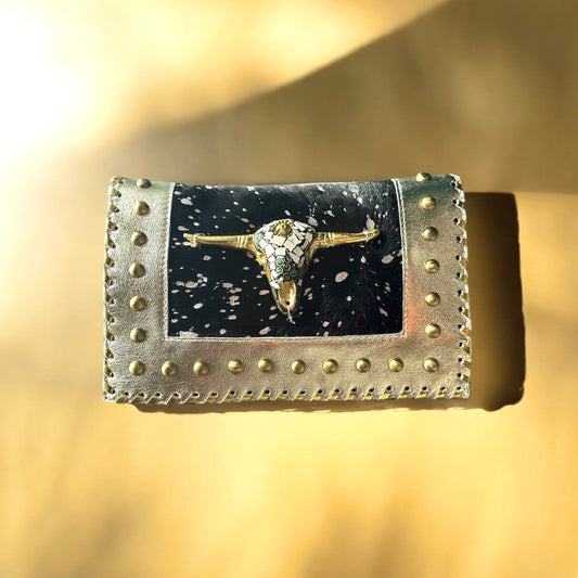 CARTERA DE MANO BOHO CHIC PIEL INDIA CABEZA DE BÚFALO | variación de colores