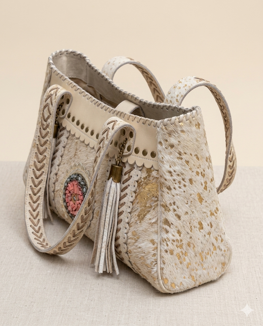 BOLSO DE PIEL CON PELO NATURAL Y FLECOS BOHO-WESTERN | 2 colores