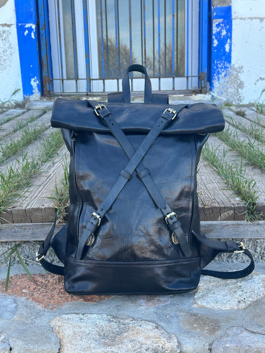 MOCHILA GRANDE DE CUERO VINTAGE NEGRO | 3 colores