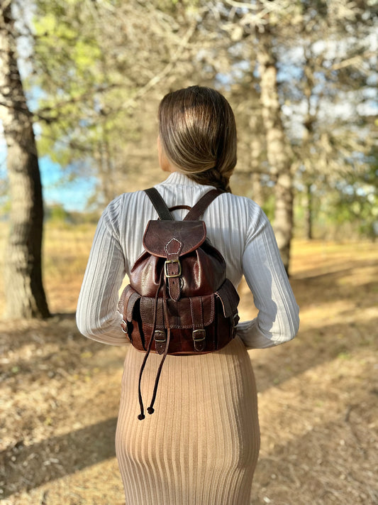 MOCHILA DE CUERO PEQUEÑA SIERRA MARRÓN | 3 colores