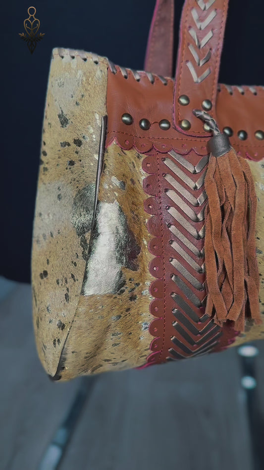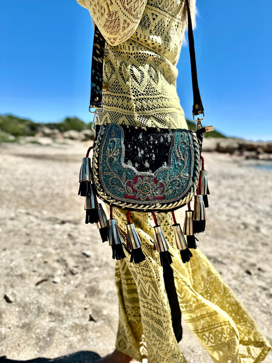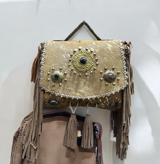 BOLSO DE PIEL CON PELO NATURAL Y FLECOS BOHO-WESTERN
