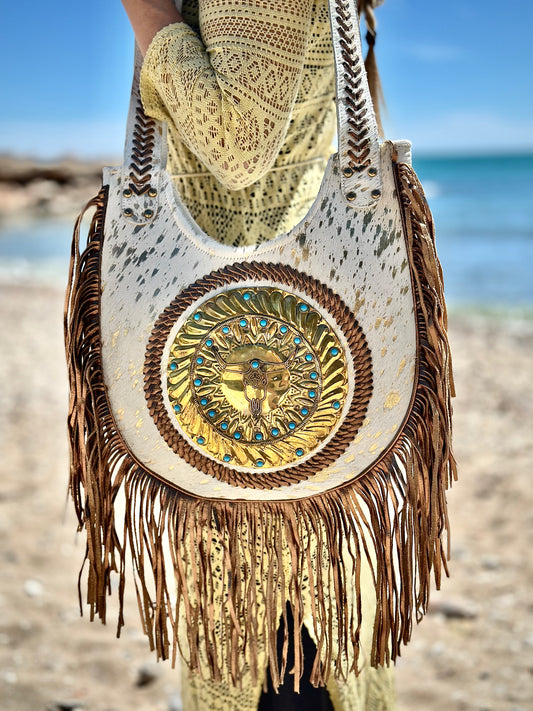 BOLSO DE PIEL INDIA ESTILO BOHO CHIC DORADO | 4 colores