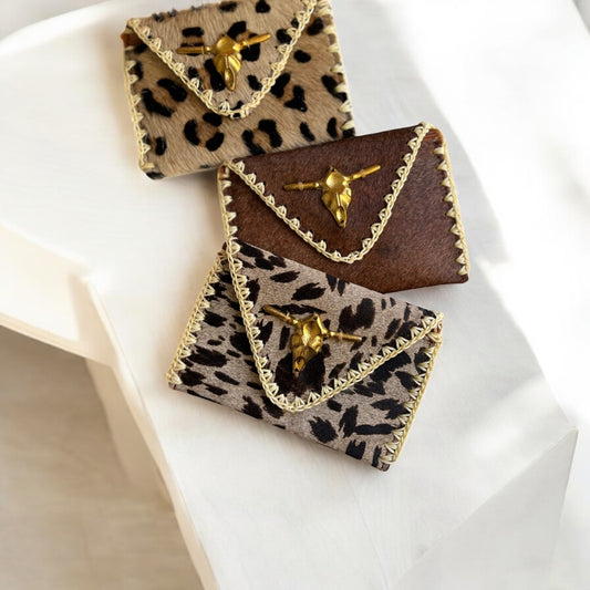 MONEDERO CARTERITA DE PIEL CABEZA DE BÚFALO | Colores y patrones mixtos