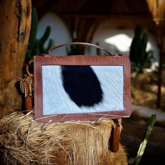 CARTERA DE MANO COW PRINT DE CUERO CON PELO NATURAL