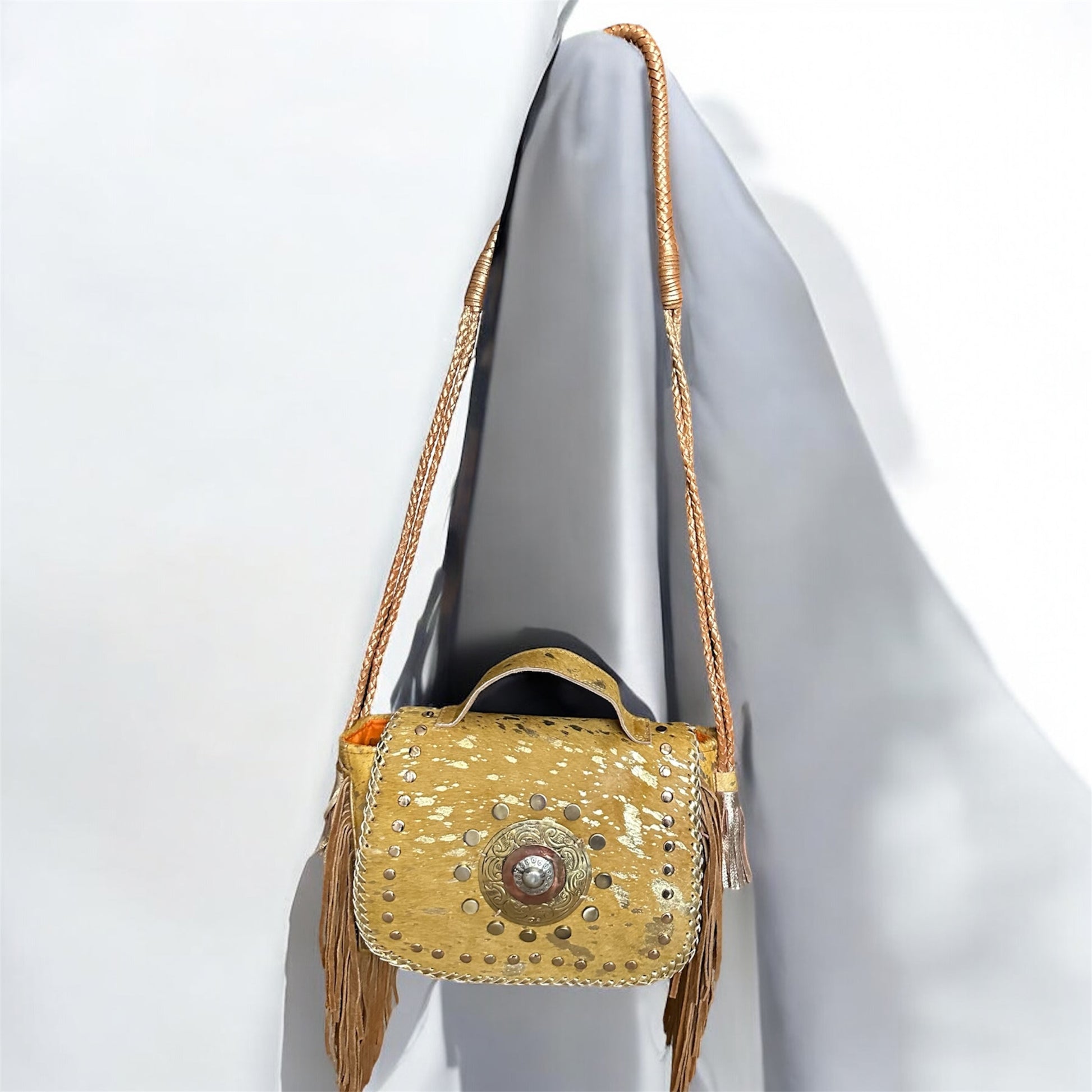 Ce sac en cuir indien fait main est l'essence du bohème chic, inspiré de l'esprit libre d'Ibiza et des designs bohèmes authentiques. Polyvalent et plein de charme, c'est l'accessoire parfait pour toutes les occasions : festivals comme Coachella, Mad Cool, Primavera Sound ou Sonorama, balade en ville... Son esthétique hippie aux détails dorés ajoute une touche bohème et vibrante qui sublime n'importe quelle tenue.