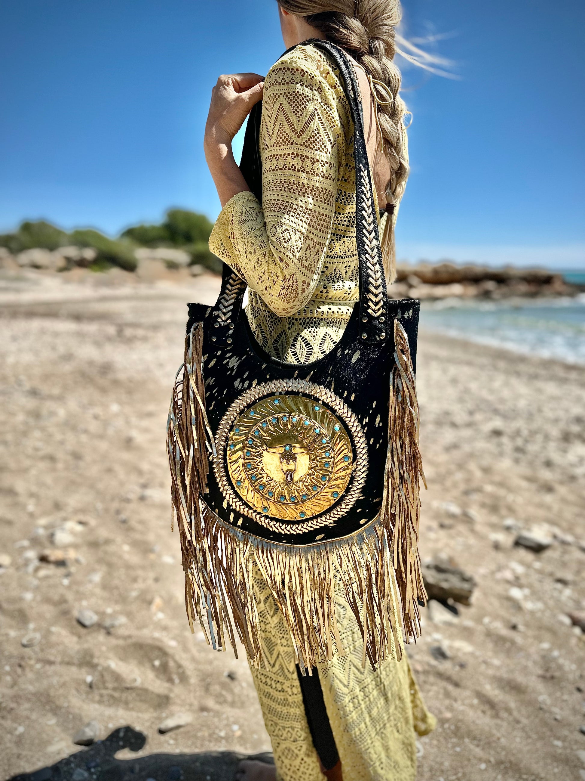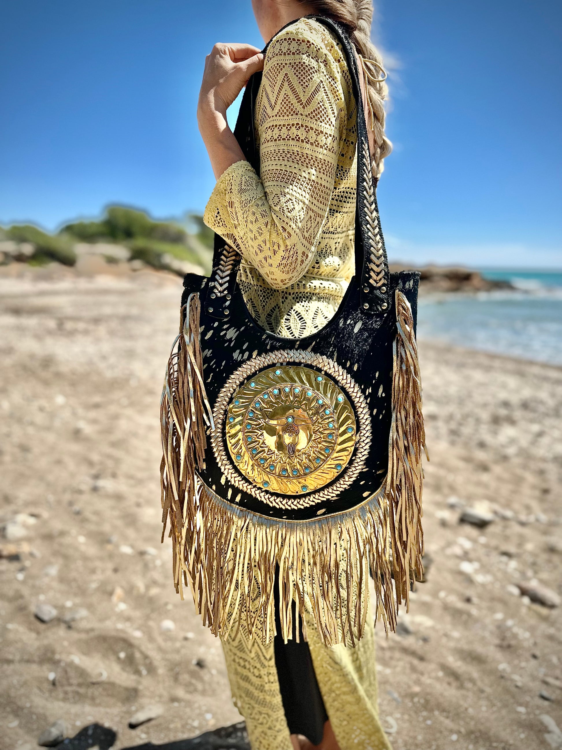 BOLSO BOHO CHIC IBIZA BOHEMIO CON FLECOS NEGRO | 3 colores
