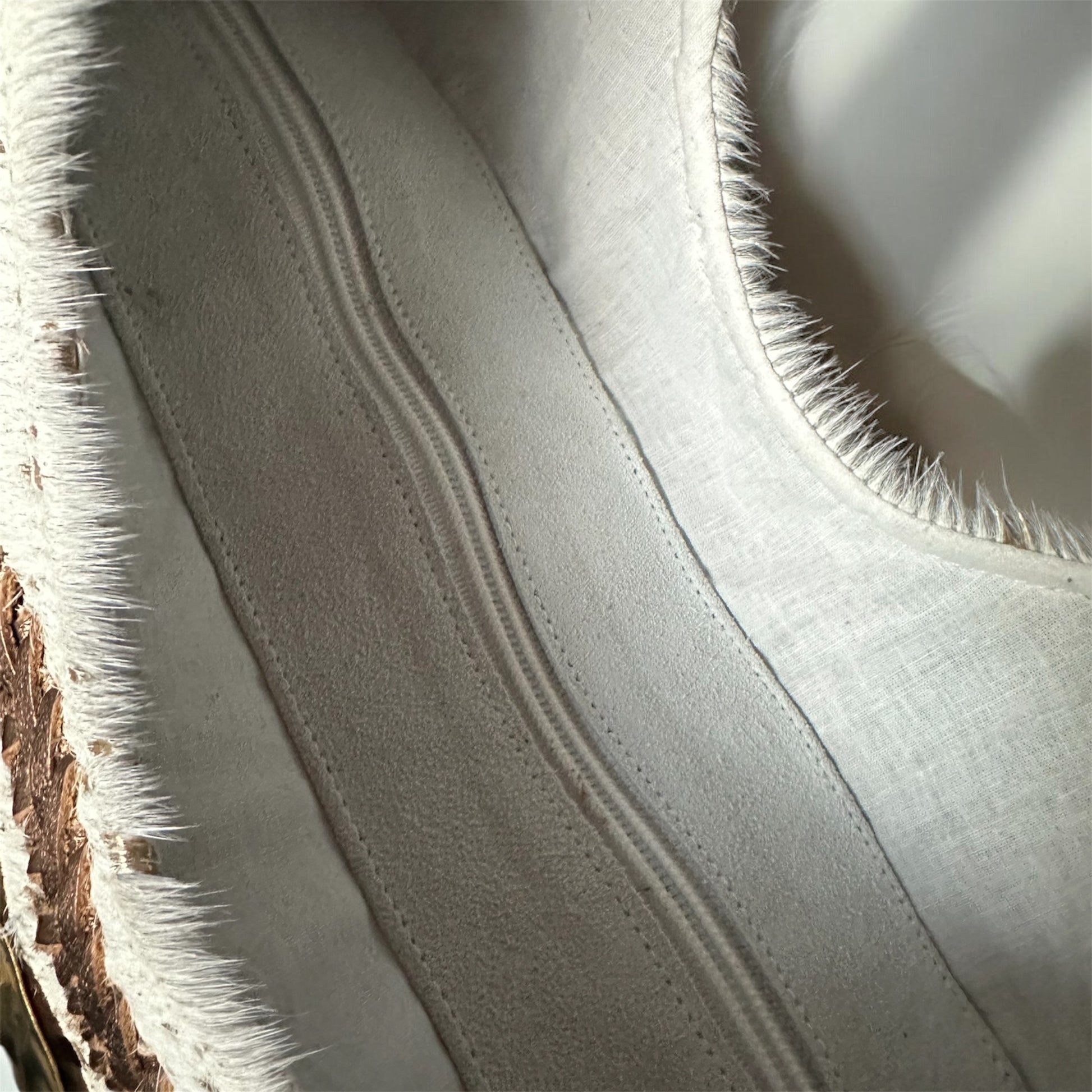 Cada bolso es una obra única, que puede poseer variaciones en la forma, en el color y la textura que reflejan la autenticidad de su creación artesanal y la autenticidad de los materiales. Estas características no se consideran taras, ya que no solo destacan la exclusividad de cada pieza, sino que también garantizan que poseas un accesorio verdaderamente especial. El color de los detalles puede variar de una pieza a otra del mismo modelo, ya que como decimos, cada bolso es único y exclusivo.